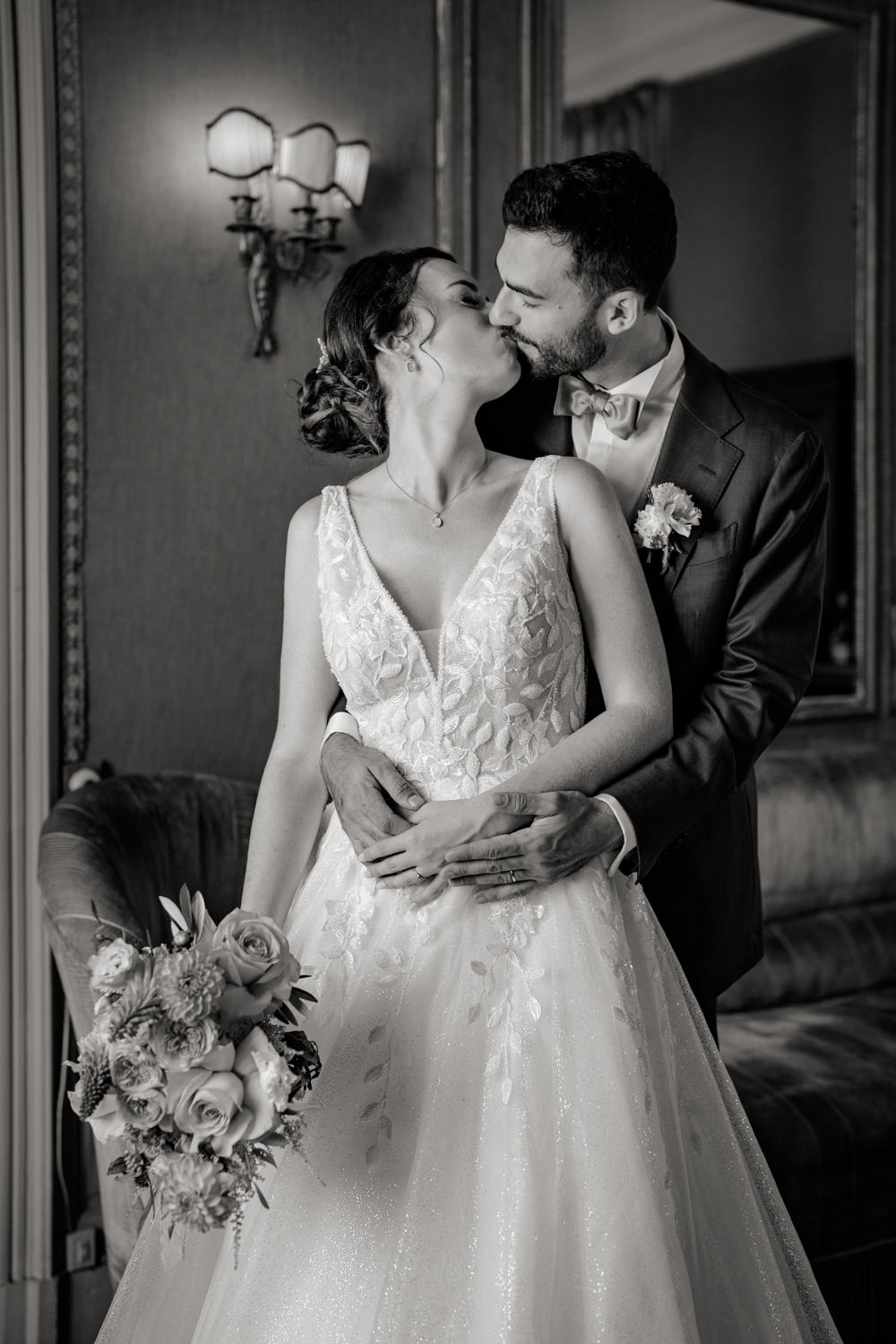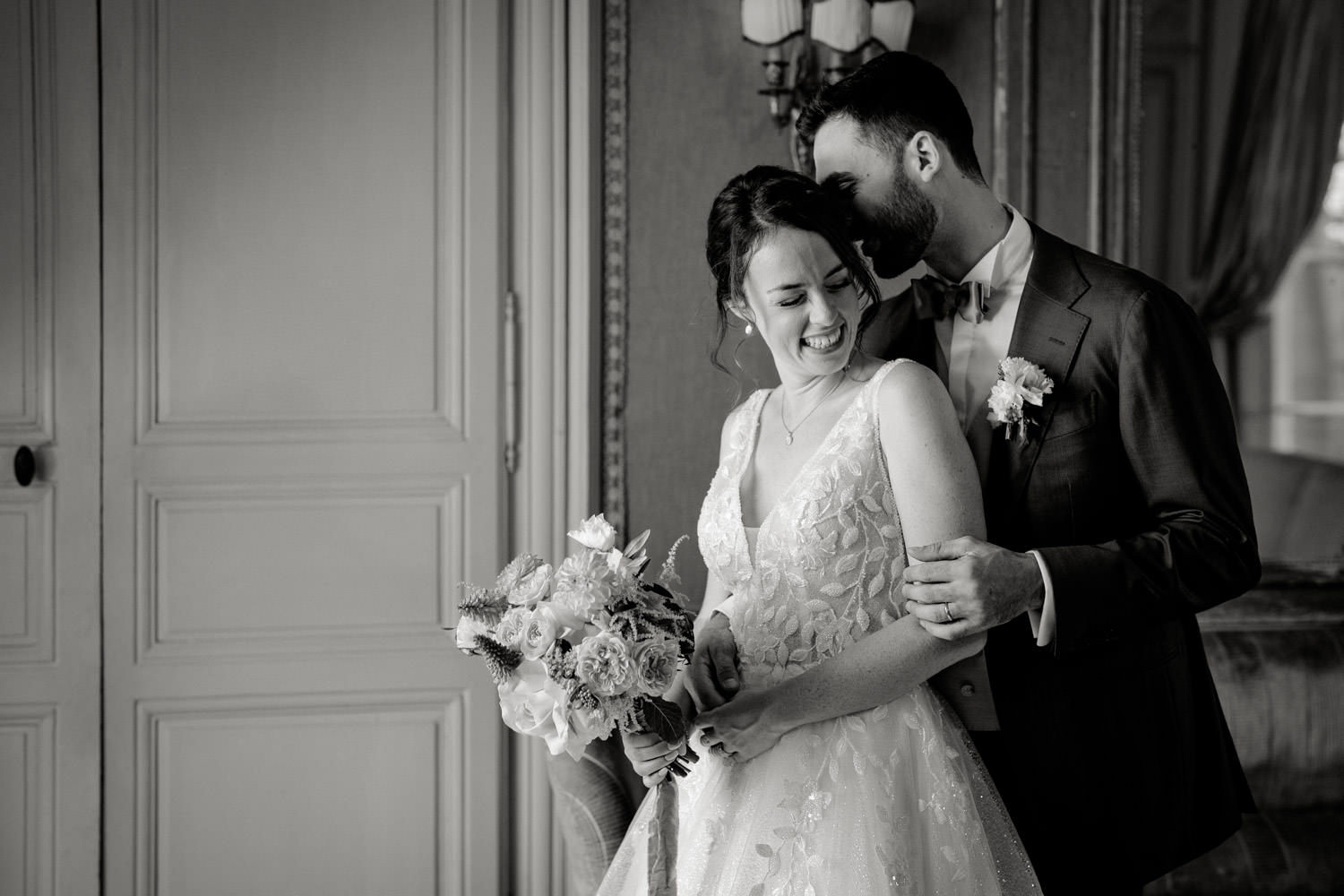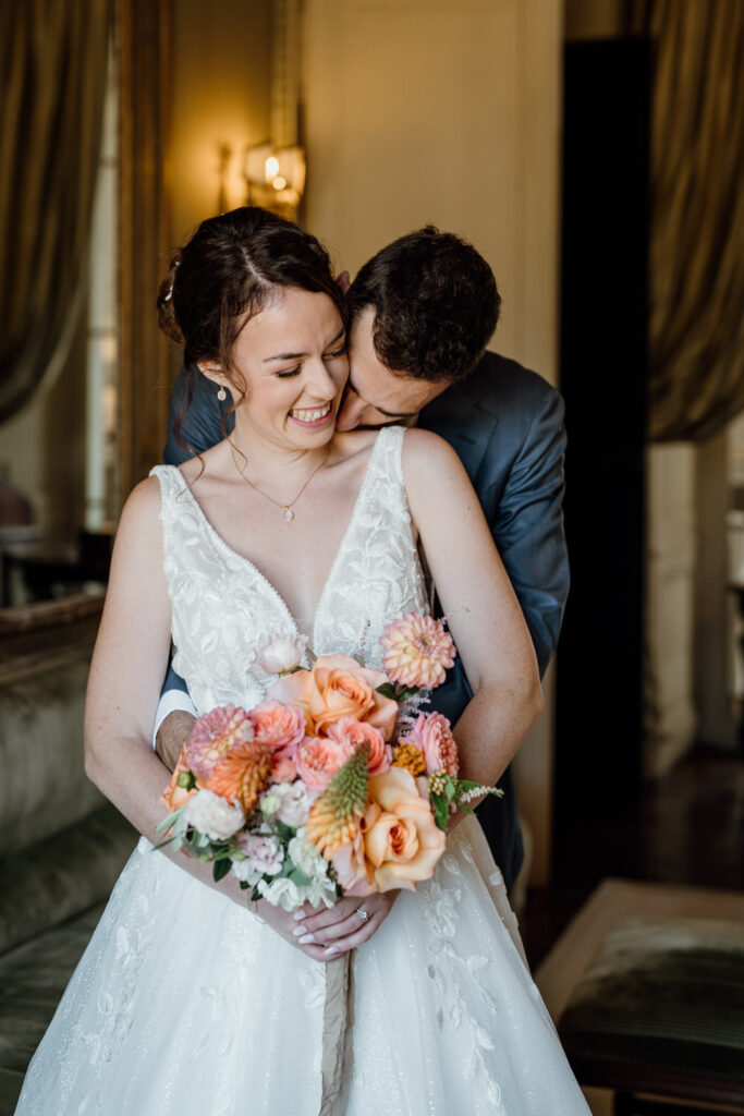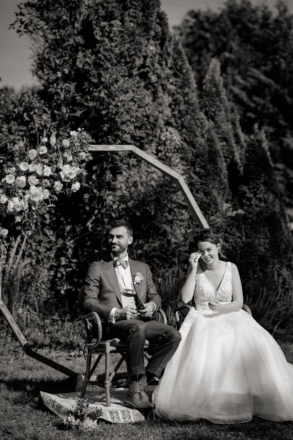 À leur retour, tandis que les invités profitaient des rafraîchissements, nous avons organisé un moment calme rien que pour eux. Une pause nécessaire pour réaliser qu’ils venaient de se dire oui.