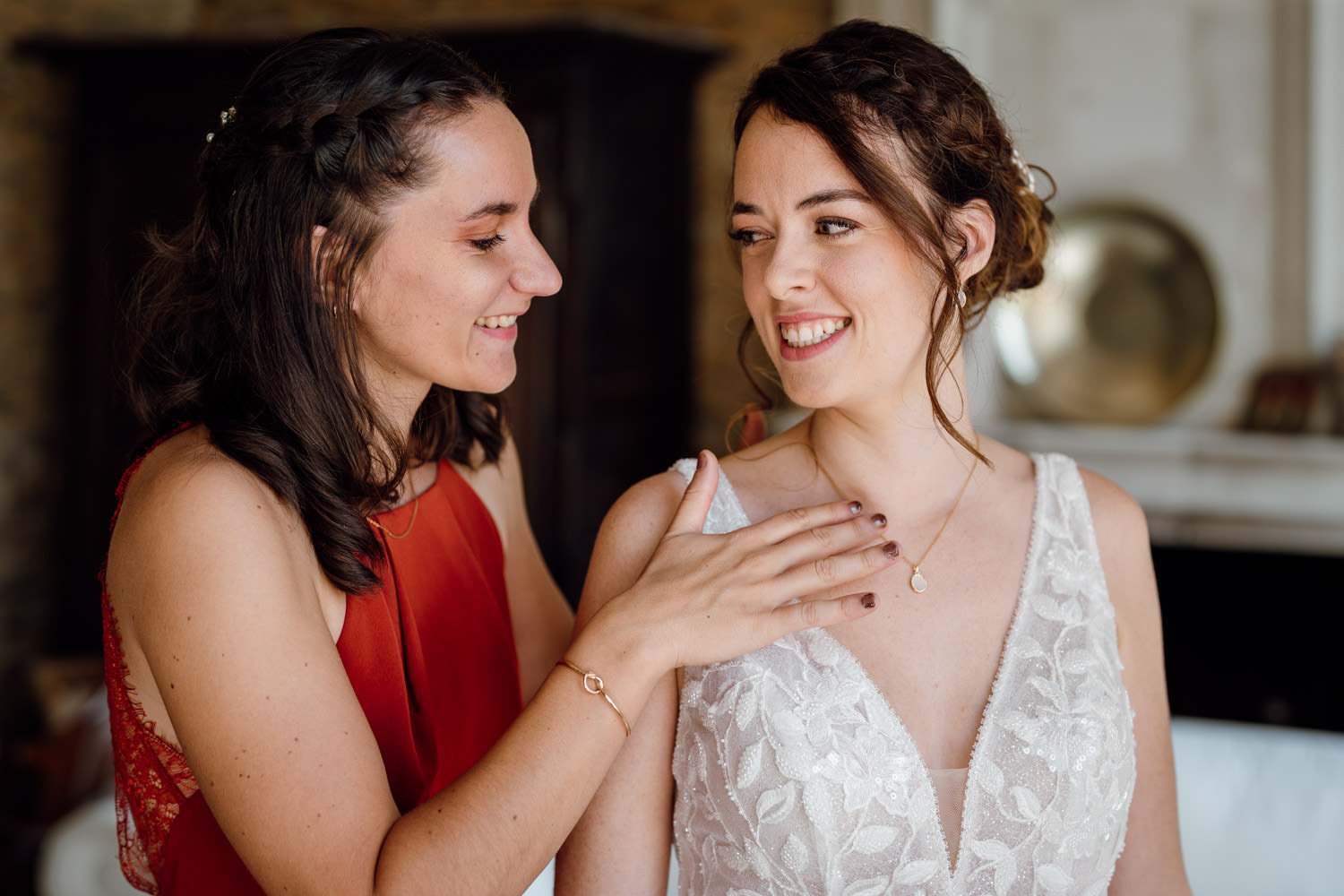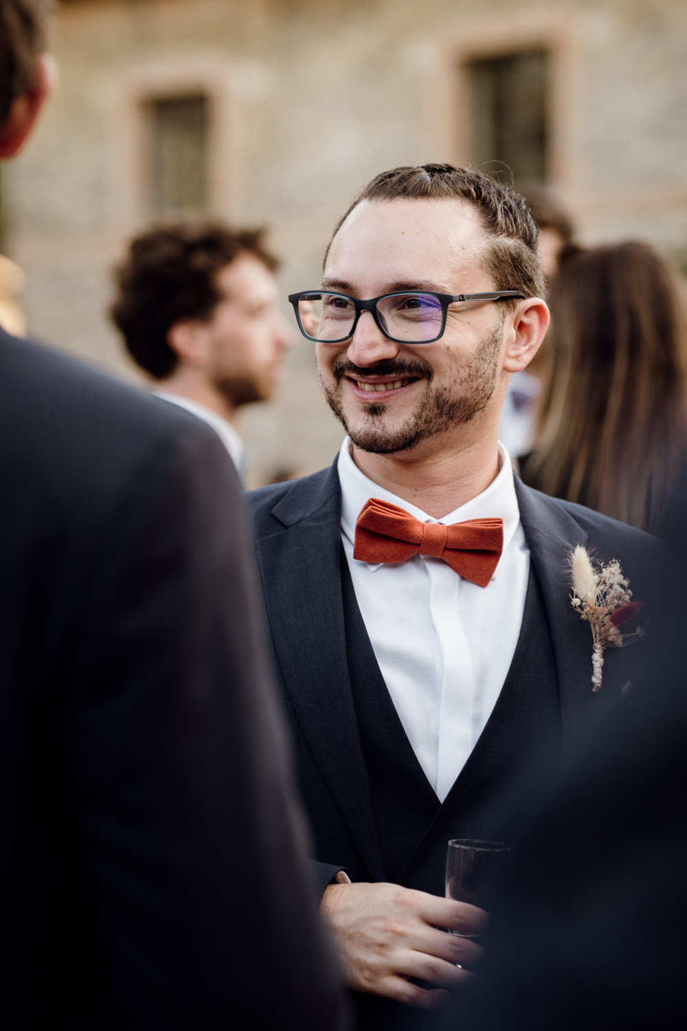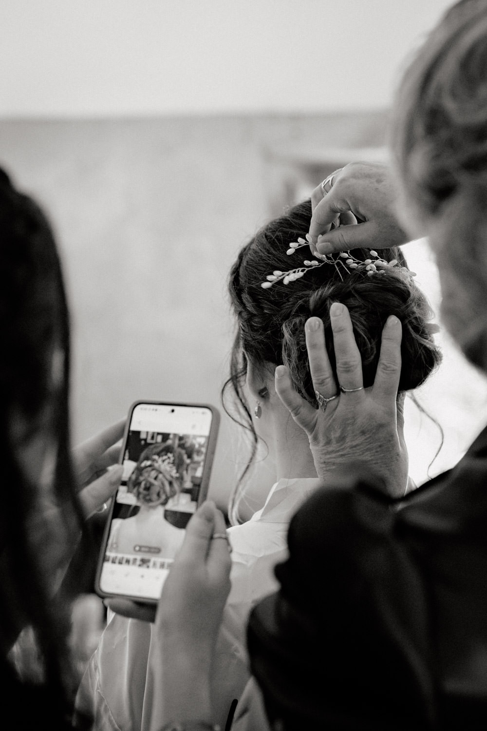 Les préparatifs se sont ensuite déroulés dans la bonne humeur. J’ai adoré voir ses proches habillés pour le mariage tout en portant un peignoir par-dessus leurs tenues pour éviter la moindre tache au déjeuner ! Une technique ingénieuse que je recommande volontiers.