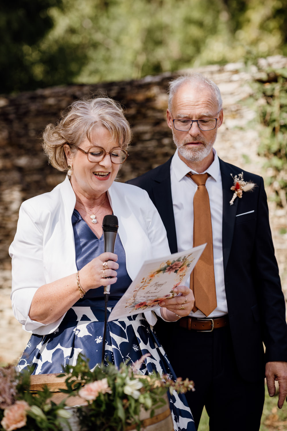 Après la cérémonie religieuse, les mariés tenaient à un moment plus informel : une cérémonie des discours. Leurs proches ont partagé souvenirs, anecdotes et mots sincères.