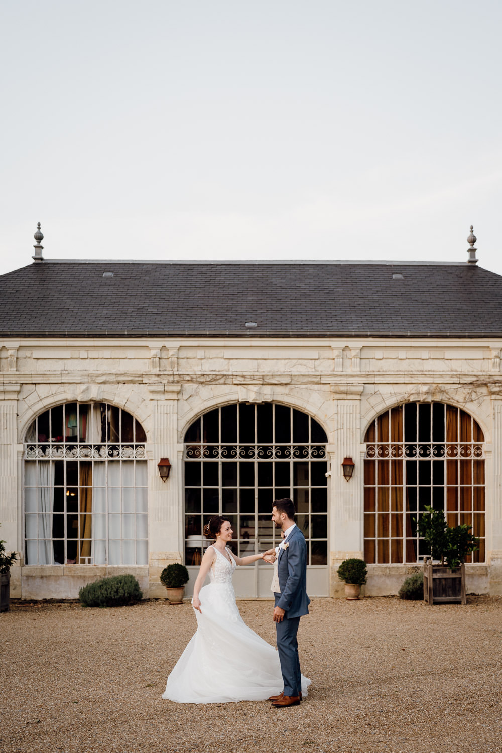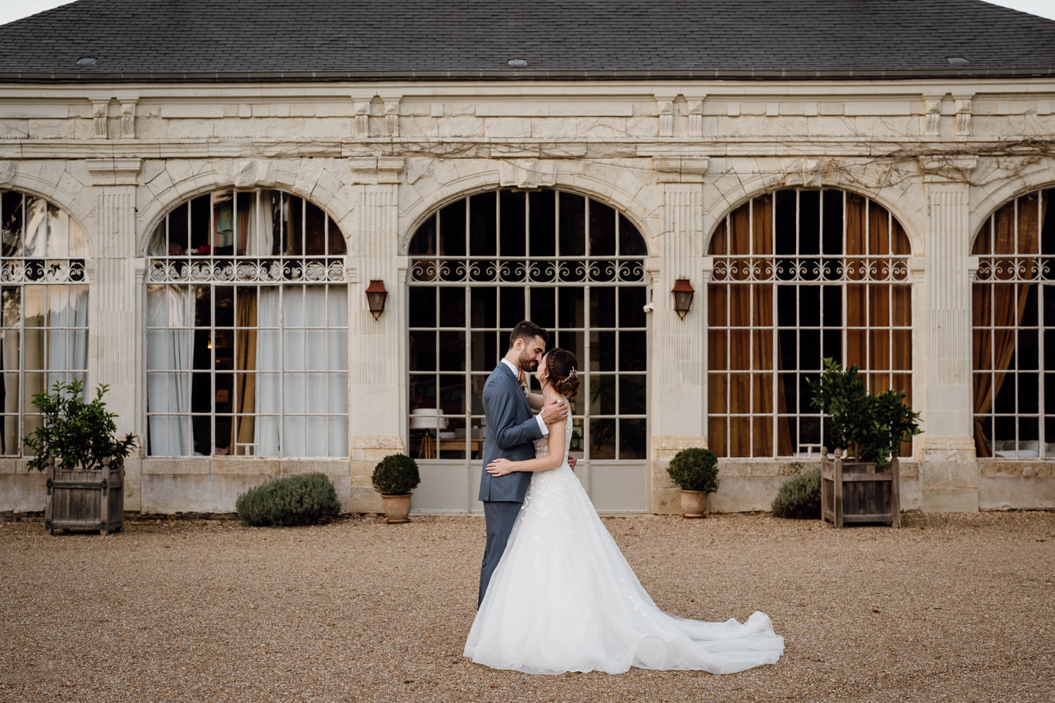 Organiser un mariage à l’Orangerie du Château des Briottières permet justement cette diversité d’ambiances : verrière lumineuse du gîte des mariés, parc arboré, architecture élégante… tout est réuni pour créer des images variées sans quitter le lieu.