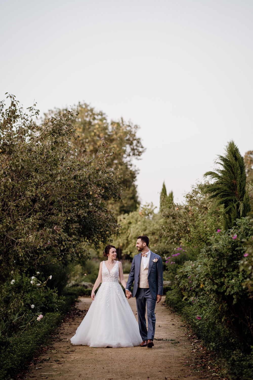 Au coucher du soleil, j’ai emmené les mariés pour une dernière parenthèse en lumière dorée. Ces instants calmes contrastent toujours avec l’énergie du reste de la journée et permettent de capturer des images plus intimes.