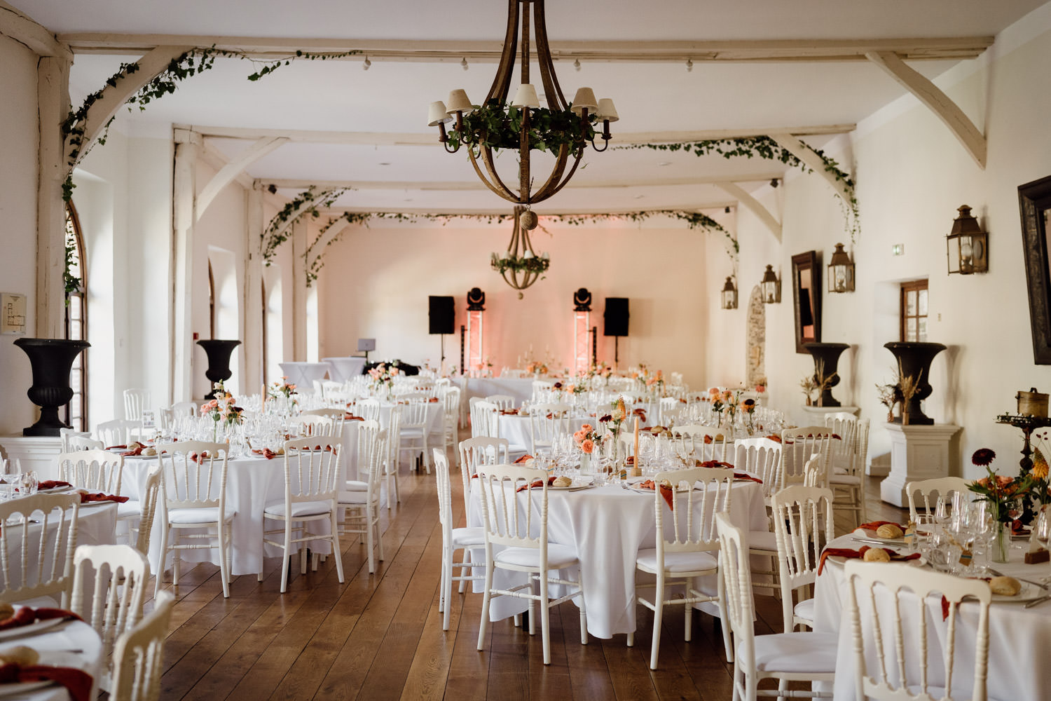 L’arrivée sur un domaine le jour d’un mariage est toujours un moment particulier. Tout est prêt, décoré, silencieux. Une atmosphère paisible flotte dans l’air, mêlée à une légère excitation. J’aime commencer la journée ainsi : doucement, en observant les détails et la lumière qui évolue.